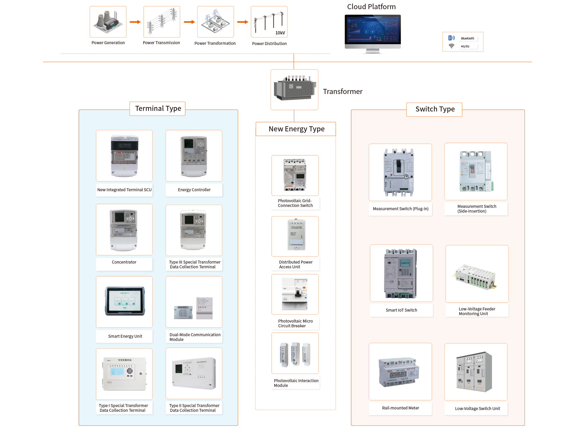 The core products are DC controllers, inverters, grid-connected switches, grid-connected cabinets and other intelligent terminal equipment under 10kv on the PV power generation side, which are mainly docked to new green energy sources such as photovoltaic and wind power, helping them to access the grid more efficiently and solving the consumption pain points.
